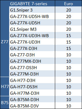 Takaisin maksettava määrä riippuu emolevyn mallista. Oheisesta taulukosta näet määrät: |