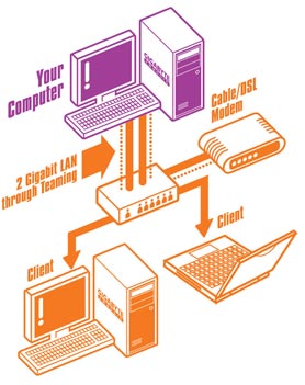 باستخدام خاصية Teaming مع منفذي شبكة، يمكننا الحصول على وصلتين تعملان كوصلة واحدة لها ضعف معدل نقل البيانات، مما يزيد من كمية المعلومات التي تتم معالجتها
