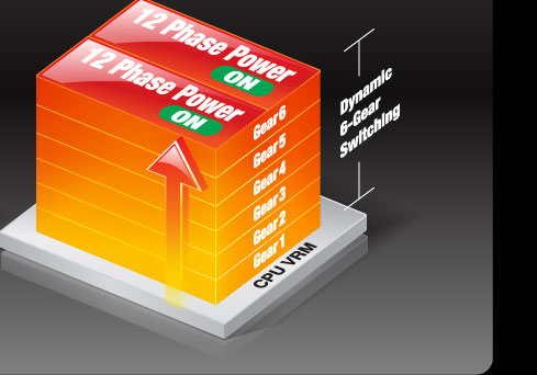 Une bonne gestion de courant est la clé des performances ! Il nous a paru évident de proposer une gestion avancée d'énergie au travers de nos nouvelles références de série 6. Nos ingénieurs ont ainsi décidé de proposer la toute nouvelle version du VRD ( Voltage Regular Down ) 12 répondant aux critères et spécifications les plus strictes de Intel, ainsi que les innovations Dual CPU Power et Power Phase Boost permettant à chaque carte mère de fournir performances et stabilité. |