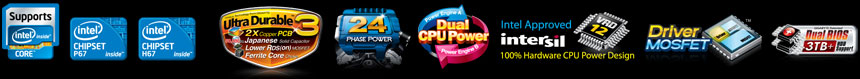 On/Off Charge USB Port, UD3, Smart6, 3 Way SLI+ATI CrossFireX, DualBIOS, Turbo USB3.0,