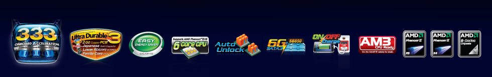 8+2 phase, Ultra Durable 3, Easy Energy Saver, Auto Unlock support, On/Off Charge support, 4way ATI CrossFireX, Smart DualLAN, Hybrid Silent-pipe2, Debug LED, Onboard Quick Switches, EasyTune6, ErP Ready