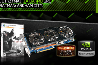 Skorzystaj z ograniczonej czasowo promocji i kup objętą nią kartę graficzną NVIDIA GeForce GTX 560, 560 Ti, 570, 580 lub 590, a otrzymasz kupon uprawniający do pobrania jednego egzemplarza elektronicznej wersji gry Batman: Arkham City dla komputerów PC. Niniejsze oferta dostępna jest wyłącznie za pośrednictwem wybranych sklepów – obowiązują przyjęte postanowienia i warunki. Aby uzyskać szczegółowe informacje, udaj się na stronęwww.GeForce.com/FreeBatman |