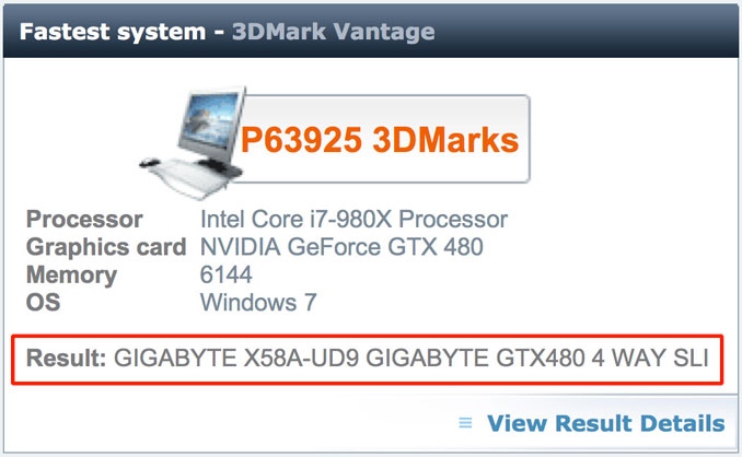 GIGABYTE GA-X58A-UD9 mengambil mahkota 3DMark Vantage Tercepat System dengan P63925 Marks (6/14/2010)