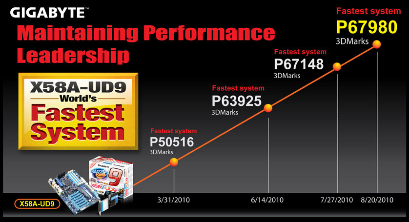 GIGABYTE GA-X58A-UD9 mengambil mahkota 3DMark Vantage Tercepat System dengan P67980 Marks (8/20/2010)