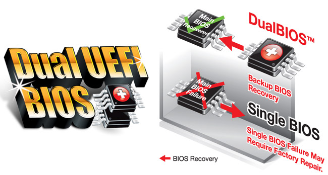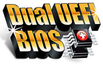 UEFI DualBIOS™ Technology At the heart of this exciting 3D BIOS technology is a pair of physical BIOS ROMs containing GIGABYTE’s exclusive in-house designed UEFI DualBIOS™ technology. With a superior graphical interface capable of 32-bit color imaging and fluid user-friendly mouse navigation, GIGABYTE UEFI DualBIOS™ makes BIOS configuration a new and exciting experience for novice and experienced users alike. GIGABYTE UEFI DualBIOS™ also brings native support for large hard drives on 64-bit operating systems.