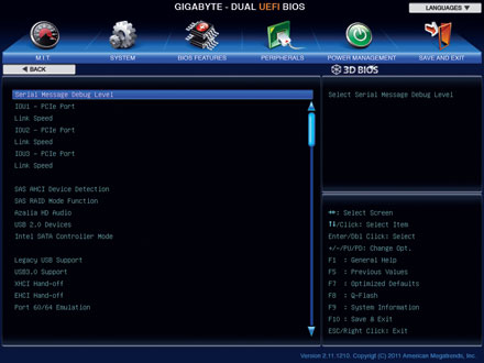 3D Mode Designed to provide an extremely streamlined and user-friendly BIOS environment, GIGABYTE’s exclusive 3D mode offers a fully interactive and illustrative GUI that allows users to easily and intuitively make key adjustments to the UEFI DualBIOS™ settings for optimum performance. 3D Mode allows novice or casual users to more clearly understand the areas of the motherboard that are being affected through the BIOS settings, gaining a clearer understanding of the BIOS functionality.