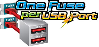 GIGABYTE One Fuse per USB Port Design |