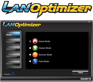 GIGABYTE LAN Optimizer is designed to allow the user to manage different types of network traffic so that data streams such as HD media, web browsing or online gaming can be prioritized, taking precedence over large data downloads that tend to strangle overall network bandwidth. |