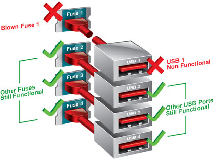 Traditional One Fuse Design for Multi-USB Ports |
