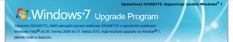 GIGABYTE poskytne nabídkový formulář Microsoftu s určitými modely notebooků distribuovaných s edicemi Windows Vista přeinstalovanými po 26. červnu 2009. Pokud je na vašem notebooku přeinstalován operační systém Windows Vista® Ultimate, Windows Vista® Business, nebo Windows Vista® Home Premium, byl distribuován po 26. červnu 2009, ale neobsahuje nabídkový formulář Microsoftu, informujte se u prodejce, je-li tento notebook zahrnut do programu možnosti upgradu.