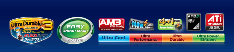 For more AMD Ultra Durable™ 3 series motherboards and detail CPU & memory support information, please refer to GIGABYTE website Click Here. |