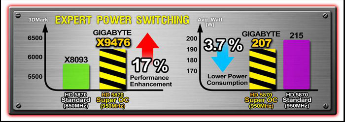 • A GIGAYBTE HD 5870 Super OC Edition graphics card delivers a 17% increase in performance compared to a standard HD 5870 card.