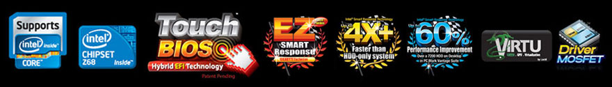 Intel Smart Response, Lucid Virtu, 16 Phase, Dual Power, VRD12, On/Off Charge,