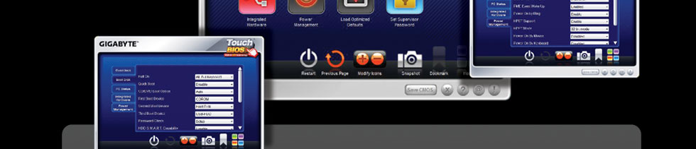 GIGABYTE has designed Touch BIOS™ from the ground-up to make it as easy as possible to navigate. Large icons allow users to navigate with a mouse or finger on a touch enabled monitor. GIGABYTE has also added several touch-friendly features including easy-to-read fonts, enlarged navigation panes and wider side scroll bars to more easily modify BIOS settings. |