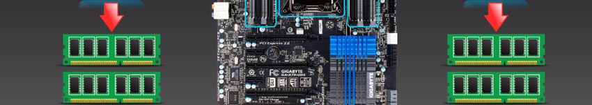 GIGABYTE is the first in the industry to utilize dual digital memory controllers for real-time system adjustment. Users can set OVP (Over Voltage Protection) and OCP (Over Current Protection) to safeguard their memory, adjust memory Load-line Calibration (to speed up response time and resolve memory vdroop), as well as adjust memory PWM frequency on-the-fly. This means that users can optimize their system for enhanced performance or stability in real-time, enjoying a new level of flexibility and control thanks to the new digital power design of GIGABYTE X79 motherboards. |