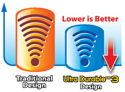 In addition, doubling the amount of copper lowers the PCB impedance by 50%. Impedance is a measure of how much the circuit impedes the flow of current. The less the flow of current is impeded, the less amount of energy is wasted. For GIGABYTE Ultra Durable 3 motherboards, this means total PCB electrical waste is reduced by 50%, which also means less heat is generated. 2 ounces of copper also provides improved signal quality, providing better system stability and allowing greater margins for overclocking.