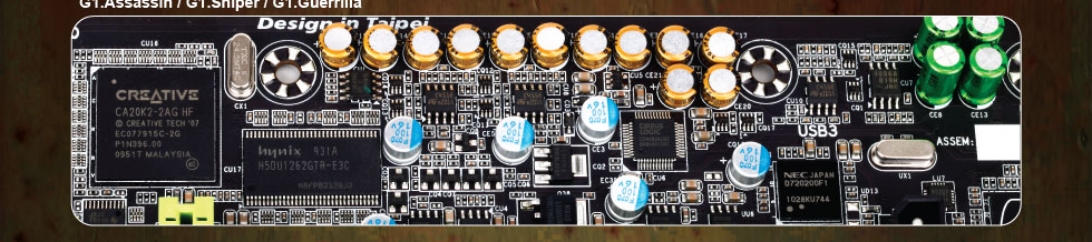 기가바이트 G1-Killer시리즈 메인보드*는 전세계 최초로 Creative사의 최고급 디지털 오디오CPU(20K2)를 내장한 게임용 메인보드로서, X-Fi Xtreme Fidelity ® 및 EAX® Advanced HD™ 5.0 기술을 적용하여 게임의 음향효과를 생생하게 경험할 수 있다. **G1.Guerrilla 메인보드는 Creative X-Fi 소프트웨어 솔루션을 지원한다. |