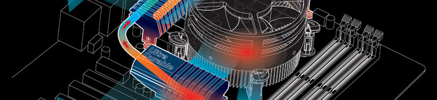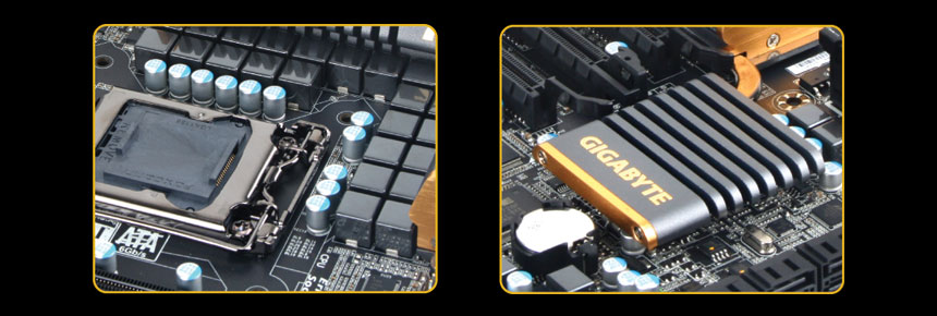 기가바이트 6시리즈 메인보드는 공기의 대류 원리와 구리파이프를 결합하는 복합 열처리 시스템을 도입하고 CPU, 칩셋의 열처리 싱크(heat sink)를 탑재하여, 차가운 공기가 들어가는 공기량과 주입 속도를 올려 운영시스템 내부의 뜨거운 공기를 효율적으로 배출하게 했다. 복합 열처리 솔루션은 시스템 온도에 매우 민감한 오버클로커에게 오버클럭의 최적 환경을 조성해줌으로써 각자의 실력을 최대한 발휘하게 해준다. * GA-P67A-UD7-B3에만 해당 |