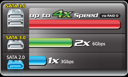 SATA 3 RAID 0 최고 4배속 성능과 SATA3 2배속 성능은 최대 이론값이며, 실제 성능은 상세 내용과 설비에 따라 달라질 수 있다. |