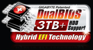 3TB이상 대용량을 지원하는 메인보드 하드디스크는 중요하고 새로운 기능일 뿐만아니라 세간의 화제가 된 기술이기도 하다. 기가바이트는 독특한 Hybrid EFI 기술을 통해 3TB이상 대용량 HDD를 지원하며 현지 시판 중인 모든 기가바이트 메인보드 제품에 적용할 예정이다. Hybrid EFI 기술의 장점은 기가바이트의 BIOS플랫폼을 통합하고 제3의 제품과 안정적으로 호환되는 것이며 EFI기술을 지원하는 3TB이상 대용량 하드디스크를 제공하여, 기가바이트의 제품을 사용하는 소비자는 최고의 기술 2가지를 동시에 모두 사용할 수 있게 되었다. 기가바이트의 특허 기술인 DualBIOS™ 은 BIOS의 데이터가 손상 또는 성능이 떨어지는 최초의 순간 자동 복구해줄 수 있다. DualBIOS™ 기술은 메인보드에 2개의 물리적인 BIOS ROM을 두어, 메인 BIOS가 바이러스에 감염되거나 인위적으로 훼손되어 컴퓨터를 켤 수 없거나 성능이 떨어질 때 백업 BIOS가 자동으로 작동하여 컴퓨터가 다운되는 것을 방지해준다. 또한 3TB (terabytes) 이상의 하드드라이브 부팅을 지원하는 기가바이트 차세대 DualBIOS™는 파티션을 구분할 필요 없이 대용량 데이터를 싱글 하드드라이브에 저장할 수 있다.