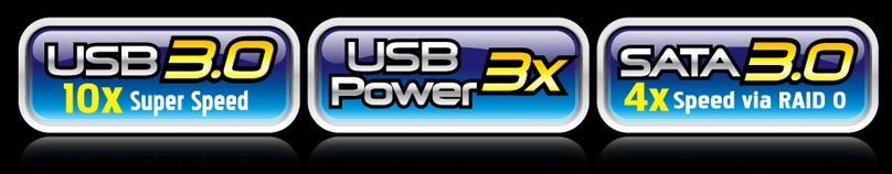 | 3x USB Power Boost de GIGABYTE fue diseñado para maximizar la compatibilidad y estabilidad de los dispositivos USB, tales como dispositivos de almacenamiento externos y discos ópticos, ya que suministra suficiente energía a través de un solo puerto USB. Esto ayuda a liberar puertos USB para usar más dispositivos USN en una placa madre. |
