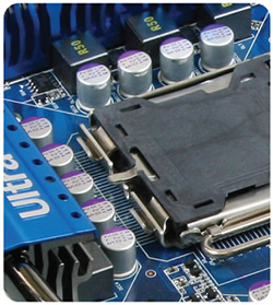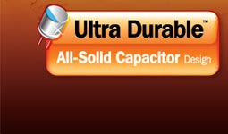 Los capacitores hinchados o explotados han molestado a los usuarios durante años. Esto disminuye dramáticamente el rendimiento del la PC, y aun pueden dañar la placa madre al punto de no operar más. Ya que no hay un componente líquido en los capacitores, no se hinchan o explotan. Además, su habilidad de tolerar las condiciones extremas y su diseño los hace ideales para ambientes de trabajo extremos. |