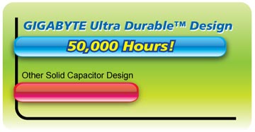 GIGABYTE ha establecido un estándar al hacer uso de diseños basados en capacitores sólidos en un amplio rango de productos durante el 2006. Este año, GIGABYTE establecerá un nuevo estándar al hacer uso de choques con núcleo de Ferrita y MOSFETs de bajo RDS (encendido) para los productos venideros.