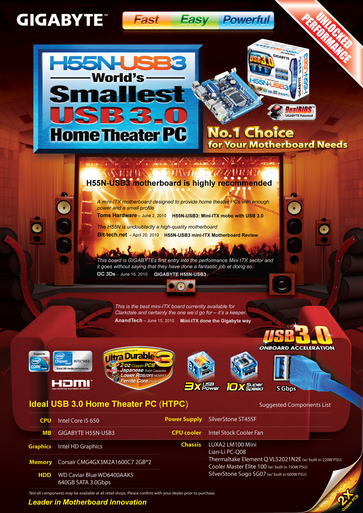 H55N-USB3: Mini-ITX mobo with USB 3.0 |