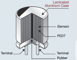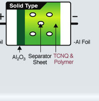 Solid capacitors are composed of a highly electro-conductive polymer that dramatically improves stability and reliability |