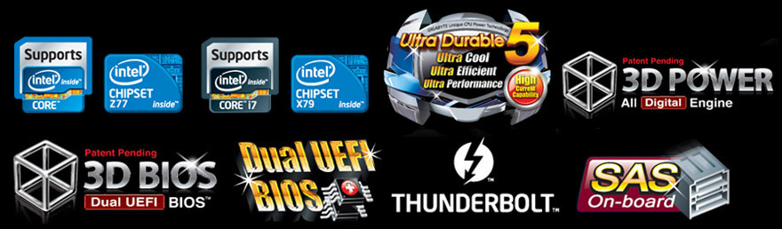 3D Power, 3D BIOS, WiFi+BlueTooth 4.0, Lucid MVP, mSATA, EZ Smart Response, SLI, CrossFireX, CFOS, On/off charge,