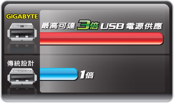 * 3倍力USB電源供應為最大理論值 實際效能可能因規格及設備而有所不同。
