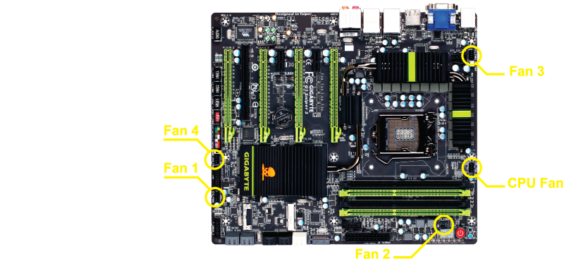 內建5組具有Smart Fan控制功能的風扇接頭,可以更精確地控制系統和CPU風扇轉速,除了能進一步幫助消除熱量,更可以很容易地透過技嘉EasyTune™6應用程式以及BIOS來控制。