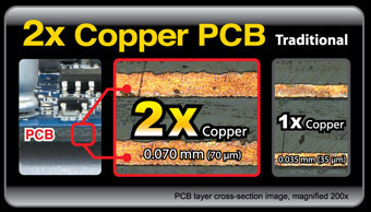 IR3550 PowIRstage® 晶片具有比其他MOSFET設計更低溫的特性,可以協助使用者將超頻效能推向新高的等級!