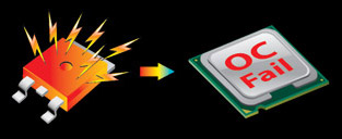 IR3550 PowIRstage® 晶片具有比其他MOSFET設計更低溫的特性,可以協助使用者將超頻效能推向新高的等級!每一種電源元件都有其可承受最高工作溫度,一旦達到這個極限溫度,若再增加更多電壓只會增加廢熱而導致超頻失敗。由於IR3550 PowIRstages® 在高電壓運作時具有比傳統效果設計更低溫的效果,所以可以承受更多超頻所需要的電壓,進而提供更高的潛在超頻能力! |