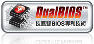 技嘉DualBIOS™的特色是在主機板上安裝二顆實體BIOS晶第二顆作用就像是備份BIOS,通常安裝出廠的BIOS,它全自動且不需使用者去設定。
