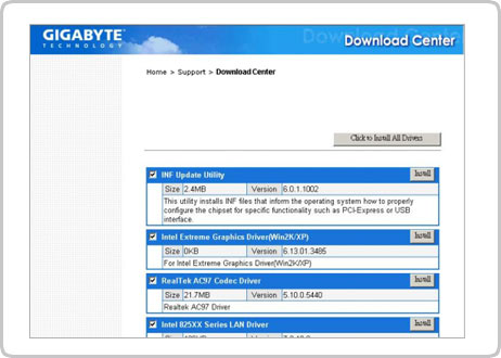 Note: GIGABYTE Download Center will only