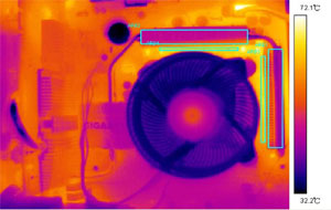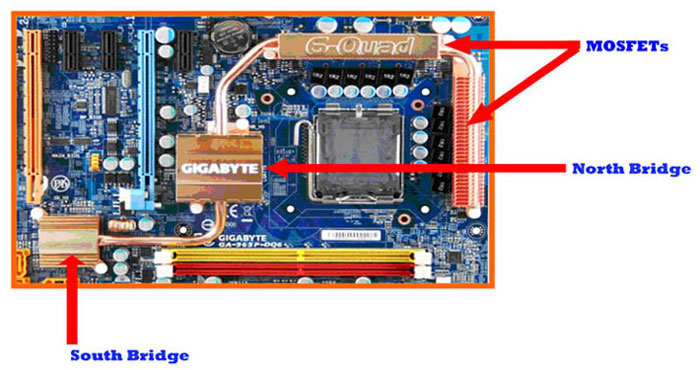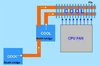 area of the chipsets as well as the fin-shaped heat sinks covering the