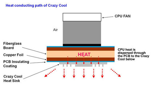 GIGABYTE Crazy Cool is an aluminum CPU fan fasten mechanism that enhances heat dissipation of the rear side of the CPU and north bridge of the motherboard. Featuring a heatsink with a thermal pad between itself and the motherboard, GIGABYTE Crazy Cool spreads and directs the heat downwards, away from the CPU area and into the case and the rest of the motherboard. |