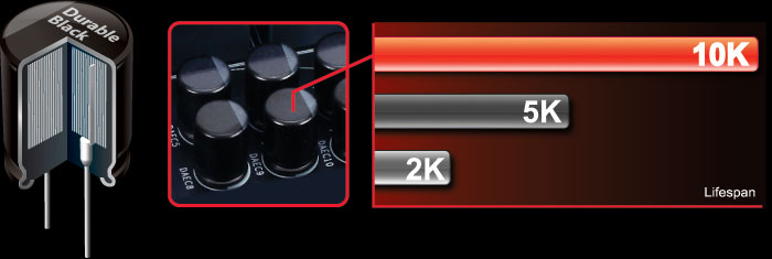 GIGABYTE X99 series motherboards integrate the absolute best quality solid state capacitors that are rated to perform at maximum efficiency for extended periods, even in extreme performance configurations. This provides peace of mind for end users who want to push their system hard, yet demand absolute reliability and stability. With ultra-low ESR no matter how high the CPU loading, these exclusive capacitors also come in customized jet black, exclusively on GIGABYTE X99 series motherboards. |