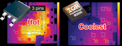 Les puces IR3550 PowIRstage® restent plus froides que la plupart des MOSFETs actuellement distribués sur le marché, permettant de plus grandes marges de manœuvre en matière d'overclocking. Chaque composant d'alimentation possède une température de fonctionnement critique à ne pas atteindre, une fois cette température atteinte et dépassée, ajouter plus de courant entrainera l'arrêt du système. Les puces IR3550 PowIRstages® fonctionnant à des températures très basses, les overclockers pourront obtenir une grande flexibilité dans les réglages, pour atteindre les résultats souhaités en toute circonstance. |