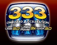 GIGABYTE 333 Onboard Acceleration motherboards set a new standard in high performance computing by incorporating all the industry's latest high-speed data transfer technologies. Proving once again to be the true Leader in Motherboard Innovation, the GIGABYTE 333 Onboard Acceleration delivers unparallel performance with onboard integration of the latest SuperSpeed USB 3.0 technologies, SATA Revision 3.0 (6Gbps) technologies, and an unprecedented 3x USB power boost on all USB ports for the most power hungry USB devices. |