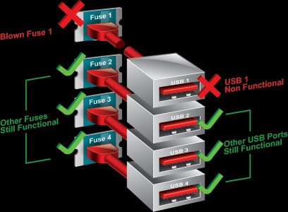 One Fuse per USB Port |