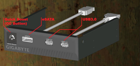 Là một phần trong hộp đựng phụ kiện, bo mạch chủ G1.Assissin được trang bị Front Access Control Panel cho phép sử dụng nhanh và dễ dàng đến 2 cổng USB 3.0 và eSATA. Front Access Control Panel cũng có nút Quick Boost cho phép game thủ ép xung ngay lập tức hệ thống của họ chỉ bằng một cái nhấn nút. Hãy tưởng tượng trong lúc đang chiến đấu và có thể tăng hiệu năng hoạt động ngay lập tức mà không cần phải khởi động lại hệ thống. |