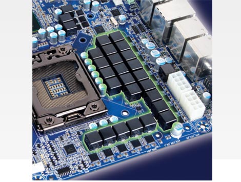Đi đầu trong nghành công nghiệp vớ itiêu chuẩn chất lương cao nhất, thiết kế 24 Phase điện của GIGABYTE sử dụng công nghệ tiên tiến và chất lương nhất lên đến 50.000 giờ. Công nghệ tụ rắn của Nhật Bản, lõi Ferrite cho hiệu năng và nhiệt độ lí tưởng hơn. Tối ưu hóa với thiết kế điện năng Intel VRD 11.1, 24 Phase điện VRM GIGABYTE cung cấp sự nâng cấp đáng kể vè hiệu suất và độ bền của sản phẩm. |