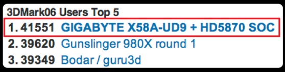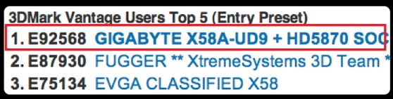 GIGABYTE GA-X58A-UD9 3DMark Vantage là hệ thống vua với số điểm P50516 Marks (31/3/2010)