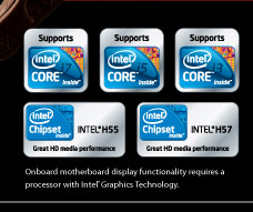 Les séries de cartes mères GIGABYTE H55/H57 vous proposeront l'innovation Ultra Durable™ 3 ( PCBs à 2 onces de cuivre ), l'innovation Smart6™, DualBIOS™, l'utilitaire Dynamic Energy Saver™ 2 et sont compatibles à la norme européenne Energy Using Products Directive (EuP)