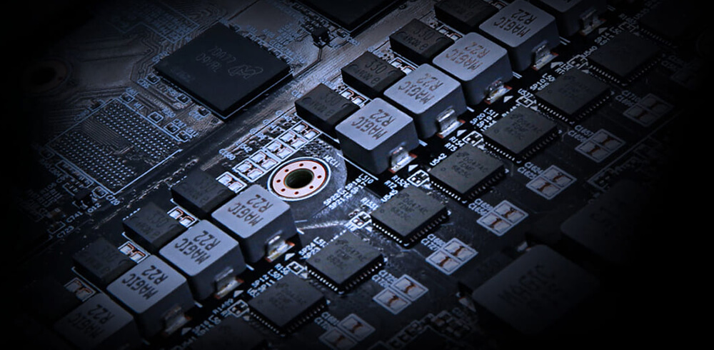 採用較佳的電源相位設計,有效降低MOSFET工作溫度,而且每個MOSFET都有提供過溫保護設計和負載平衡,再加上Ultra Durable認證的全固態電容、金屬電感與超低電阻式電晶體等高品質超耐久用料,提供卓越的顯卡性能和更長的使用壽命。