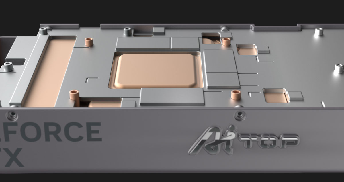TURBO FAN 鼓風扇散熱系統非常適合多顯卡配置或空間有限的機箱。金屬外殼的凹槽設計和鼓風扇設計,能夠增加風量進氣。再加上採用均熱板直接接觸GPU和銅製鰭片等設計,可以提供更有效率的散熱效果。