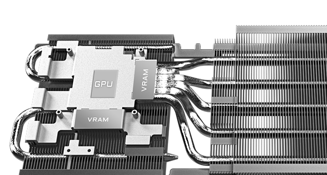 為了確保產品的卓越品質與高度可靠性,導入伺服器等級高效能導熱凝膠,用於冷卻VRAM和MOSFET等重要零組件。此凝膠具備高延展性及不流動特性,可完美貼合各種不平整元件表面,有效避免傳統導熱墊於運輸或長期使用後變形的問題。