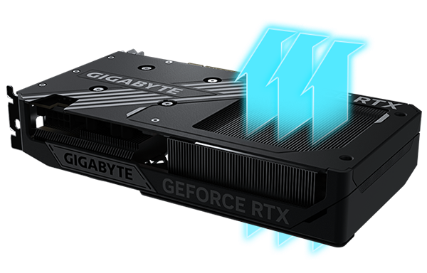 風之力散熱系統結合多項頂尖科技,提供卓越的散熱效能。系統採用伺服器等級導熱凝膠、創新的Hawk風扇搭配正逆轉功能、複合式銅質導熱管、銅板、風扇停轉功能以及增強型screen cooling散熱等多項技術。
